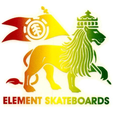 Express yourself with an Element Skateboards sticker. This sticker has a clear background and features a lion, "the king of the jungle" carrying a flag with the Element logo on it. Size is approximate. Skateboarding, sport, decks, tricks, competition, street skateboarding, Johnny Schillereff, Underworld Element Skateboards.